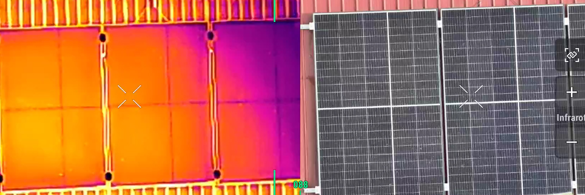 Während des Überflugs wird die thermografische Untersuchung ihrer PV-Anlage mittels hochauflösender Infrarot-Wärmebildtechnik durchgeführt.